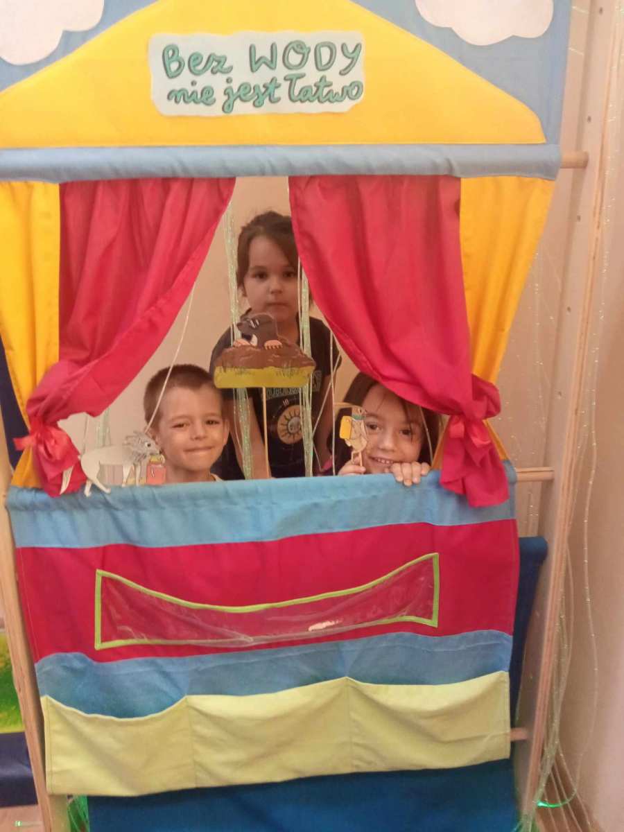 Dzieci z grupy „Wesołe Nutki”, ,,Biedronki” i ,,Sówki” realizowały w tym roku szkolnym program organizowany przez Polską Akcję Humanitarną pt. „Świat w Przedszkolu”. Program ten składa się z pięciu modułów tematycznych wpisujących się w założenia edukacji globalnej. Jego celem było pokazanie poprzez zabawę i rozmowy, że wszyscy jesteśmy częścią świata. Odległe geograficznie wydarzenia wpływają na nas, a my mamy wpływ na to co się dzieje na innych kontynentach. Na ostatnich zajęciach zaprezentowano bajkę pt. „Bez wody nie jest łatwo” w formie teatrzyku.